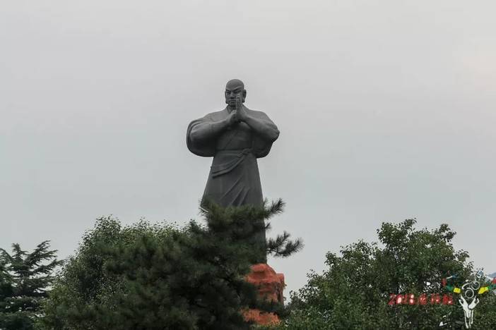 矗立的少林武僧石像,仿佛在为车手加油鼓劲。