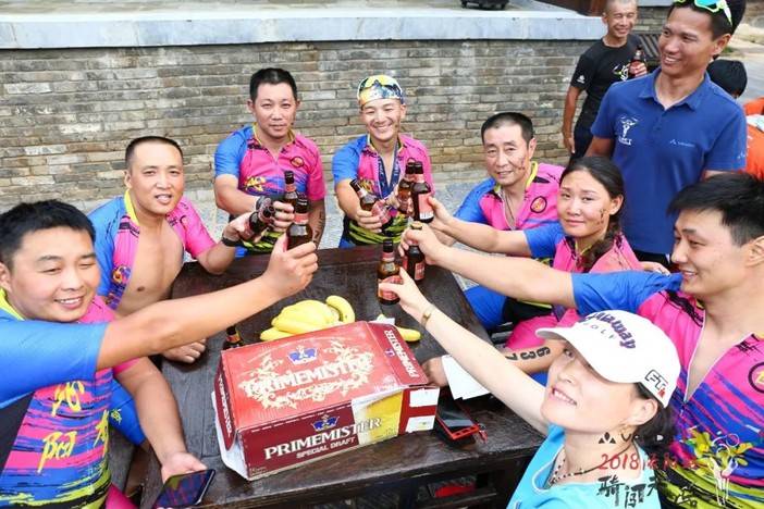 赛后派对吸引了众多闯爷闯妹参加,大家一起畅饮首相啤酒,听着台上的川藏赛闯爷闯妹分享十天川藏赛的故事,乐也融融。