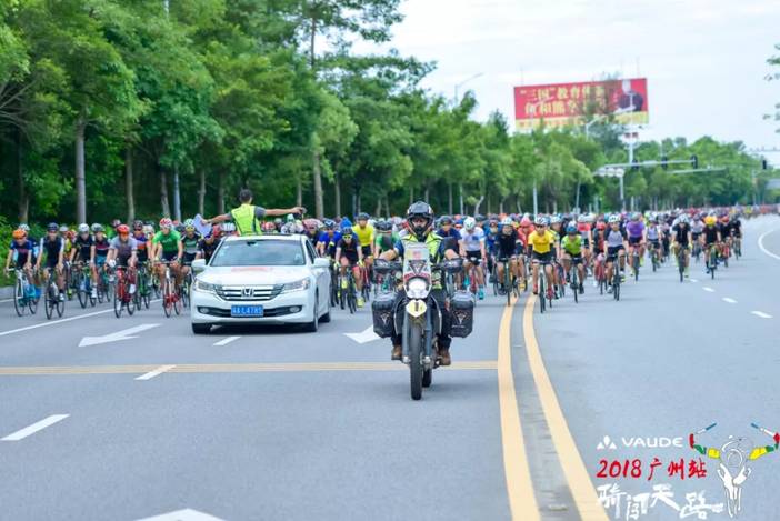 早上8:30,骑闯天路广州站在广东省户外运动协会监事长易洪陶先生和VAUDE(巍德)中国总经理郭荣明先生的发令笛声下拉开了序幕,一众骑闯组选手陆续出发。浩浩荡荡的大部队在路上奔驰,宁静的赛道一下子变得热闹非凡。