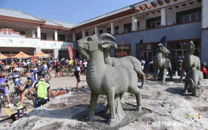 来到本次比赛的折返点——梯面镇,迎接选手的是一个有着特殊意义五羊雕塑。这里是花都梯面镇联民村,“羊石顶”上有一座“金羊石”,据当地很多老人说,这块“金羊石”是广州“五羊”的祖先。