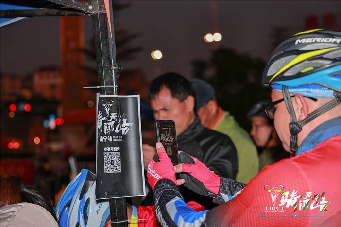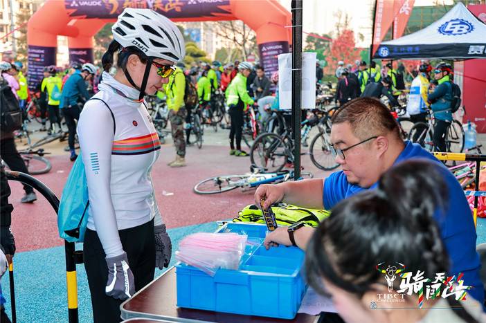 12月5日,闯爷闯妹们来到南宁市自行车运动协会进行赛前领物签到。号码牌、贴纸、运动饮料、芯片准备到位,工作人员一一就位,等待选手的到来。