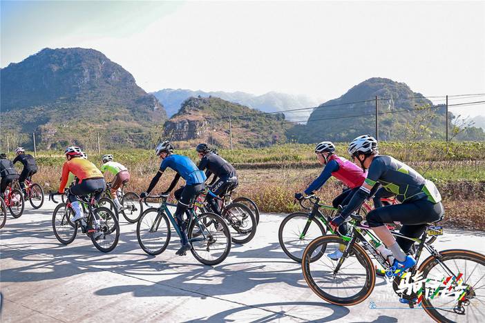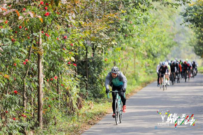 相较于前四年,今年没有虐人的“心路”,也没有酷暑夏日里的大汗淋漓,凉爽冬日与优美的田园风光相遇,平路与爬坡赛段相辅相成,石灰岩地貌、远山氤氲、怒放鲜花、绿树青草田野,成就了今年的狂欢派对般的南宁骑闯。