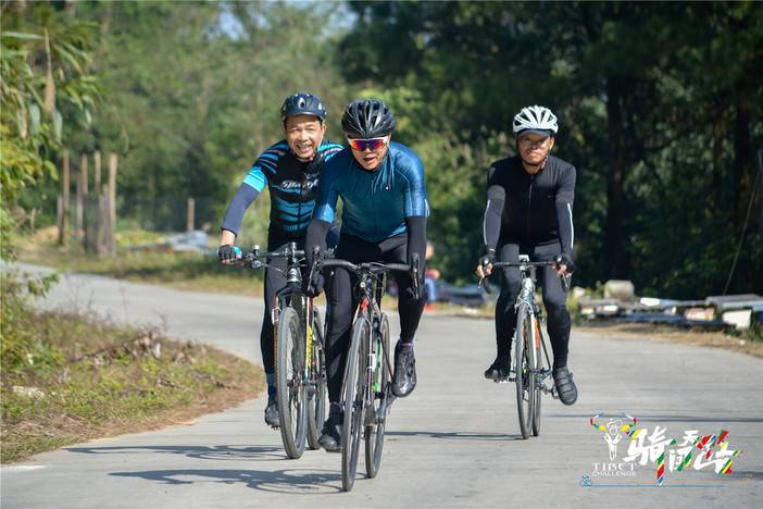 家在广西的骑闯天路川藏赛选手金岩也参与这场骑行盛会中,时不时带风领骑。
