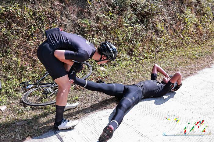 每个人都有自己的方式去经历这场挑战,可以是面带微笑轻松驶过,可以是筋疲力竭选择一步步推车经过,也可以是努力过后队友贴心的拉伸。