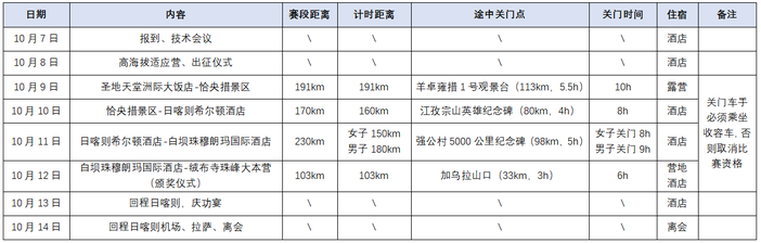6.4 离会后,参赛车手不能自行携带的物资,将跟赛事组委会运抵赛事终点后,随组委会物资托运至拉萨。离会车手可在拉萨自行提取物资。